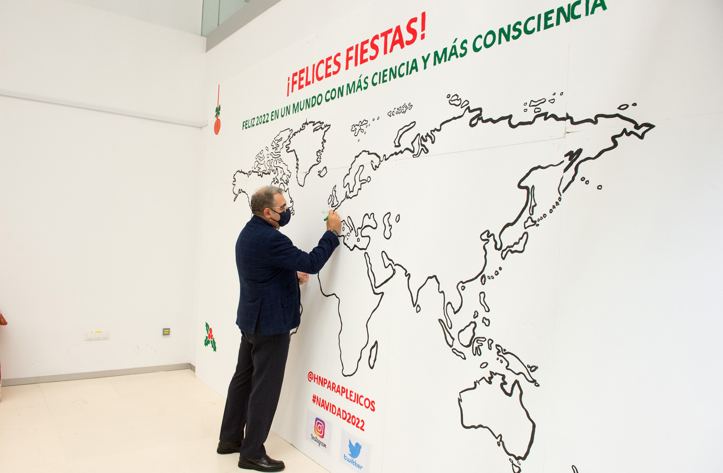 ‘Por un mundo con más ciencia y más consciencia’, lema de la pared de los deseos instalada en Parapléjicos durante la Navidad 2021